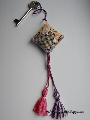 I saw these cats and wanted to stitch them immediately. Although I don't like cats... But these are so nice, like pictures in a comic book! As a result I have a trinket for the key which I lost all the time.