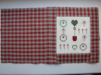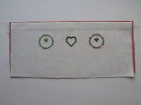 3) Обрамить вышивку. Для этого притачать к верхнему и нижнему срезу вышивки детали для обрамления. Припуски швов разутюжить в разные стороны. Затем притачать к левому и правому срезу детали детали для обрамления. Припуски швов разутюжить в разные стороны.