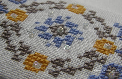 Захотелось добавить немного бисера. Остановилась на прозрачном, чтобы он не выглядел слишком навязчиво.