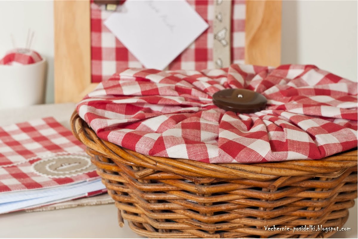 There is a continuation of my previous post about accessories for my sewing place. Today I will show more things I've made from red checked fabric.