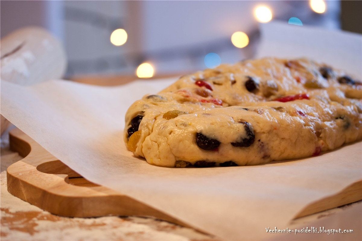 В мастерской Деда Мороза кипит работа. Времени до праздников все меньше, дел все больше. Игрушки готовы, разложены по мешкам и самое время надевать поварской колпак и браться за выпечку. Что там у него по плану? Имбирные печенья, пряничные человечки, рождественские кексы, рулеты, штоллены... Вышивая такой сюжет, не может не захотеться чего-нибудь соответствующее испечь, правда же? Вот со штоллена или, другими словами, рождественской коврижки я и начала. Думаете рано? А вот и нет! Штоллену нужно три недели чтобы созреть, пропитаться ароматами цукатов и сухофруктов, одним словом, дойти до нужной кондиции. Сегодня я дошивала новогоднюю салфетку и пекла ароматные штоллены одновременно, так что салфетка позировала в естественных условиях. :)