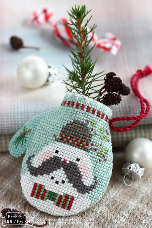 Да-а, впервые встречаю усатого снеговика! Крайне редкий экземпляр среди популяции снеговиков :) Сшивание миниатюр на любой равномерке замучает кого угодно...Но по готовой варежке этого совсем не видно! Кажется все гладко и легко! И в этом ваш огромный плюс, Татьяна!