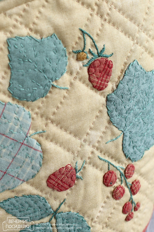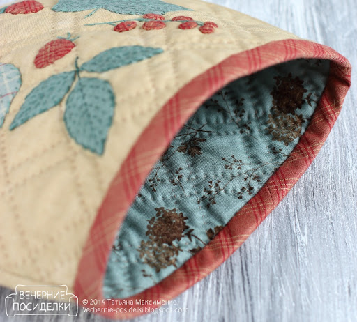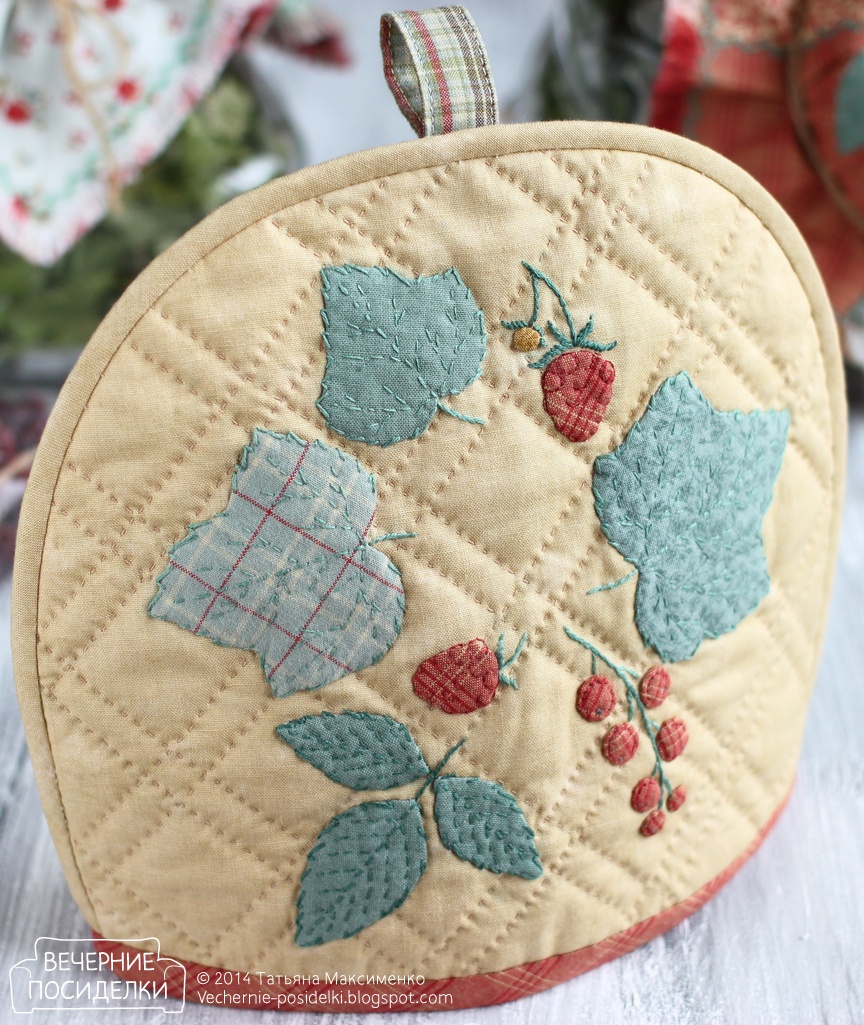 Ух, грелочка хороша! :) Я тоже хочу себе сделать такую, а тут у вас и решение увидела - окантовать бейкой. Ягодки такие нежные получились и простегано очень уютно!