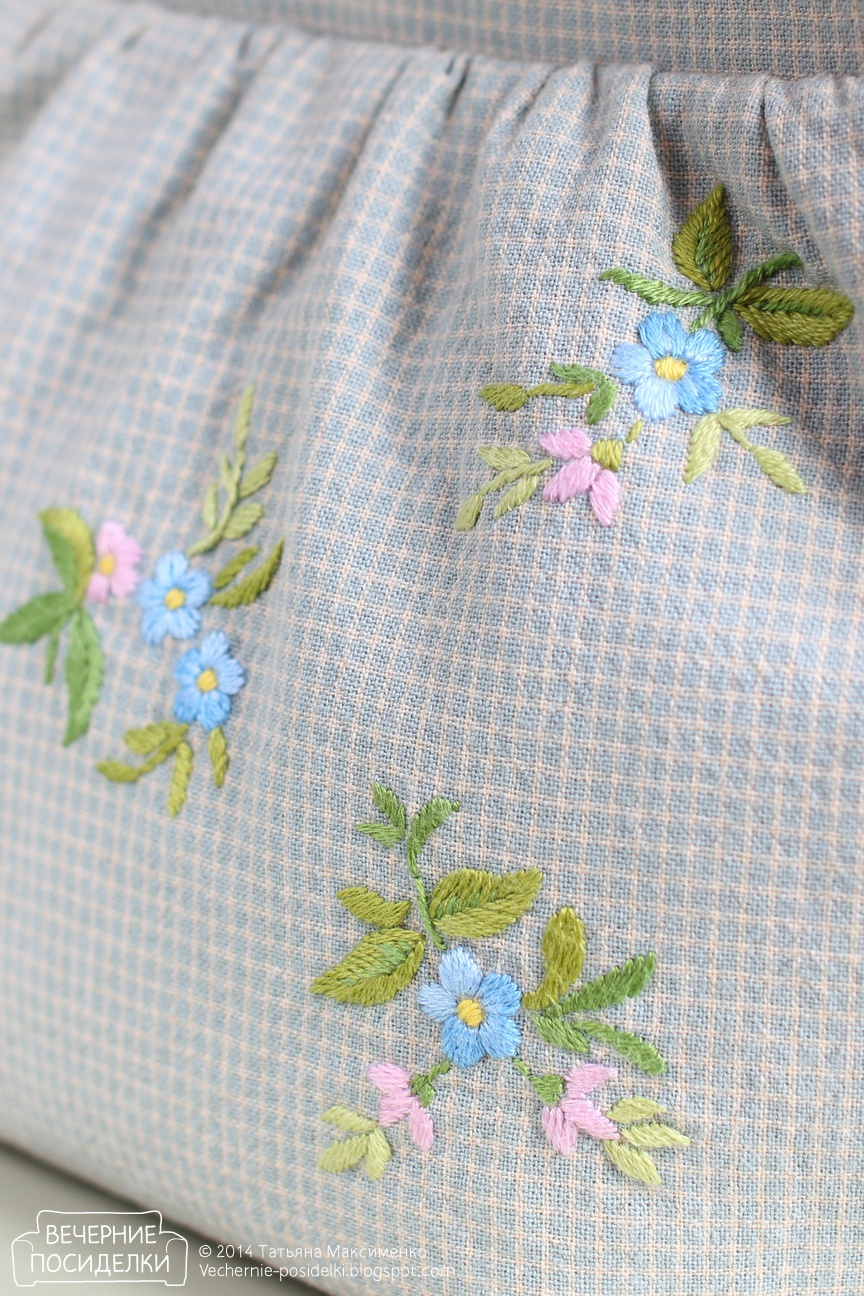 Ново, нежно, со вкусом и с безупречной аккуратностью )) всё в лучших традициях Вечерних посиделок. У вас так много вышивки гладью, мне кажется это сложнее, чем крестики, всё никак не решусь ). Спасибо за новую порцию вдохновения, Татьяна ))