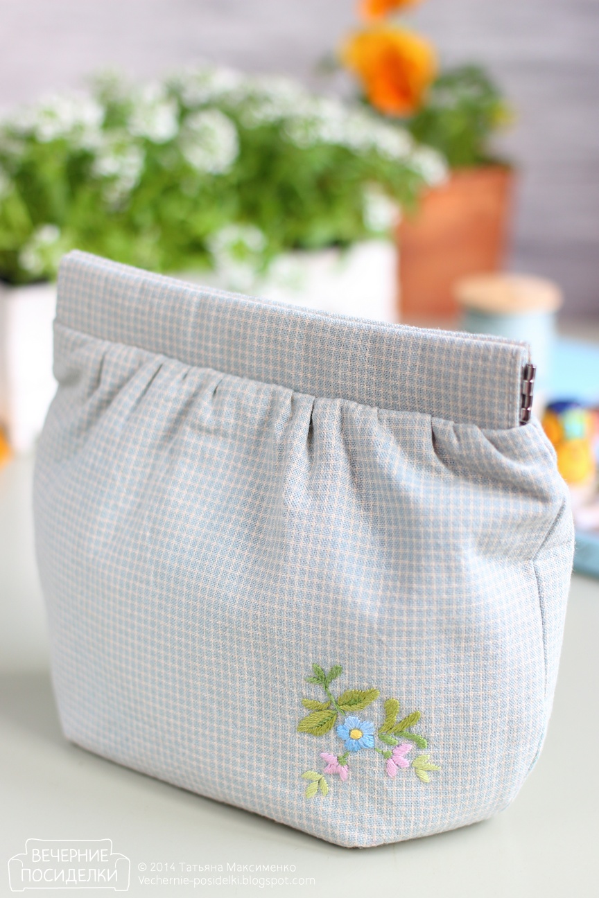 Снова вышивка. Вот что значит летняя погода за окном — сразу тянет повышивать, да и полевые цветы я очень люблю, а незабудки особенно: вышивать различные их вариации могу бесконечно. Эти мои незабудки не «японцы», как вы возможно подумали, а «немцы» (из «Anna»), вышила их на косметичке с совершенно новым для меня замком, который и задал общий стиль и форму. Такие замки я и раньше в готовых вещах, конечно, видела (правда только сейчас это понимаю), но как-то не интересовалась, что это