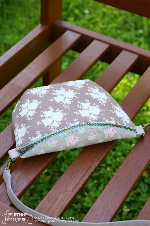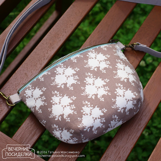 Ну и, наконец, миниатюрная сумочка на пояс. Рассказываю о ней последней, хотя сшила первой. Сумочка женственная и даже романтичная. Можно носить и с джинсами и с платьем.