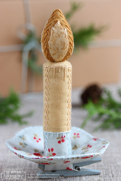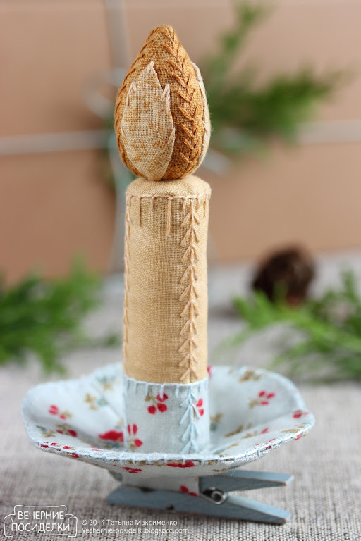 Таня, это шедевр, по-моему. И гениально! Сшить игрушку-свечку на елку, да еще и с этим изумительным креплением. Прекрасный декор для ёлки.