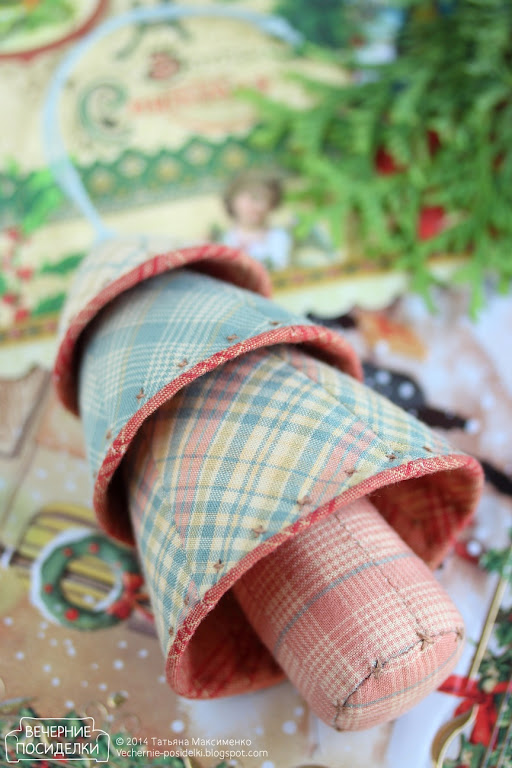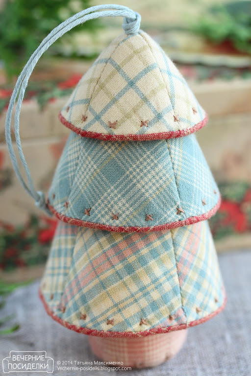Руки тянулись расшить ёлочку разными шовчиками по сложившейся уже для подобных игрушек традиции: вдоль швов и по краям ярусов, но потом решила сделать эти контрастные красные ободочки (кстати, это не бейка, я конечно её очень люблю, но окантовка толщиной в 1мм — и для меня перебор), а в сочетании с ободочками шовчики не смотрелись (для очистки совести несколько вариантов я всё же попробовала), так что ограничилась крестиками вдоль краёв. Мне кажется получилось очень винтажно-ностальгически. Люблю такое настроение у ёлочных игрушек.