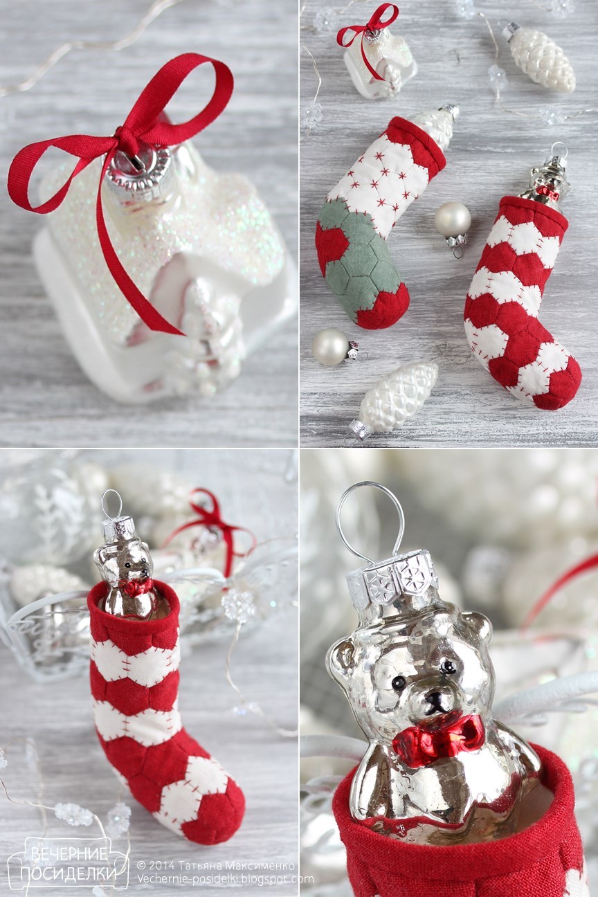 Чудесные носочки, очень новогодние. Мне они кажутся очень хрупкими, как и стеклянные игрушки рядом с ними на фото.