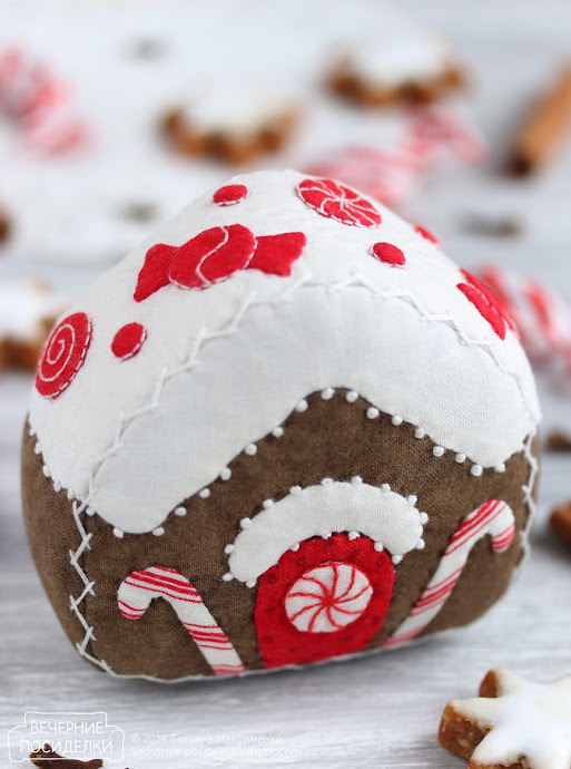 Замечательный домичек. Мне кажется было бы здорово, если коричневая ткань была покрашена кофе - тогда бы домик еще и пах замечательно. Хотя если пекутся штоллены, это и не нужно)) И так уже витают ароматы нового года. А я приближения праздников что-то не чувствую вообще, хотя готовлюсь потихоньку.