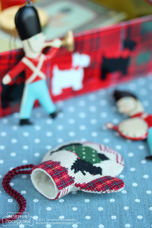 Кто до сих пор не вышил эту чудеснейшую крикетовскую варежку, тот я. :-) Скотч-терьерчик впрыгивает в последний вагон уходящего 2014-го и пополняет мою коллекцию вышитых рукавичек на ёлке. Эта кажется уже шестая по счёту.