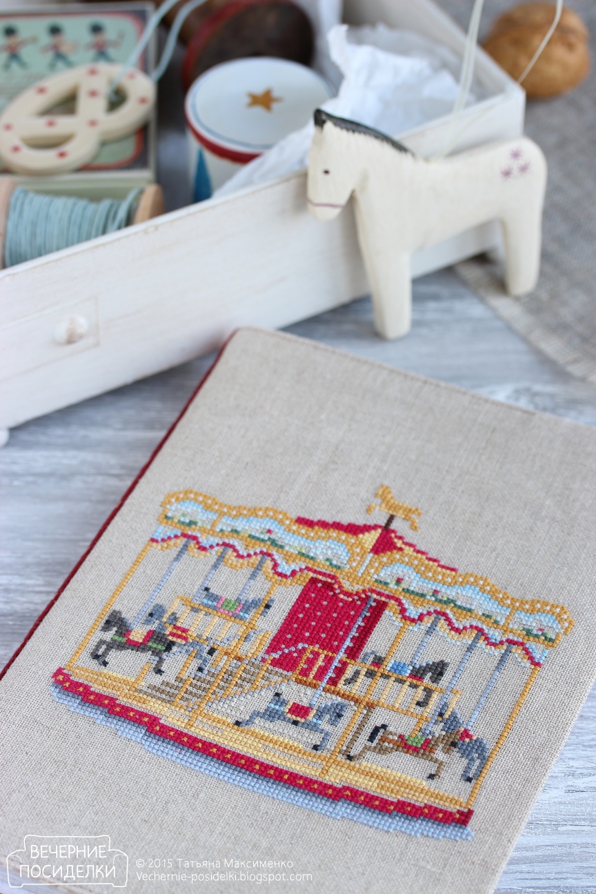 Обложка очень понравилась, не только вышивка (мне тоже очень нравятся карусели), цвет тканей и как она у тебя регулируется. Эти закругленные края так хорошо смотрятся.