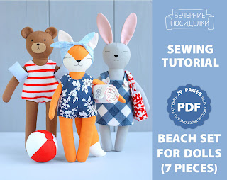 «Beach set for dolls (7 pieces)» sewing pattern is available on my Ballwool shop, DailyDoll shop and Pinkoi shop. Welcome!