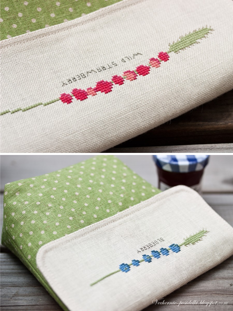 У меня совсем не получается строить вышивальные планы, в том смысле, что понравившееся должно быть вышито в самое ближайшее время. А если отложу и запланирую вышить, скажем, через пол года, то все, пиши пропало, скорее всего уже не возьмусь - «перегорю». Но есть такие дизайны, их, правда, единицы, которые и давным-давно нравились и до сих пор трогают, например, эти скромные ягодки, нанизанные на травинки от Kazuko Aoki (у меня прямо дни японской культуры :)).